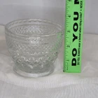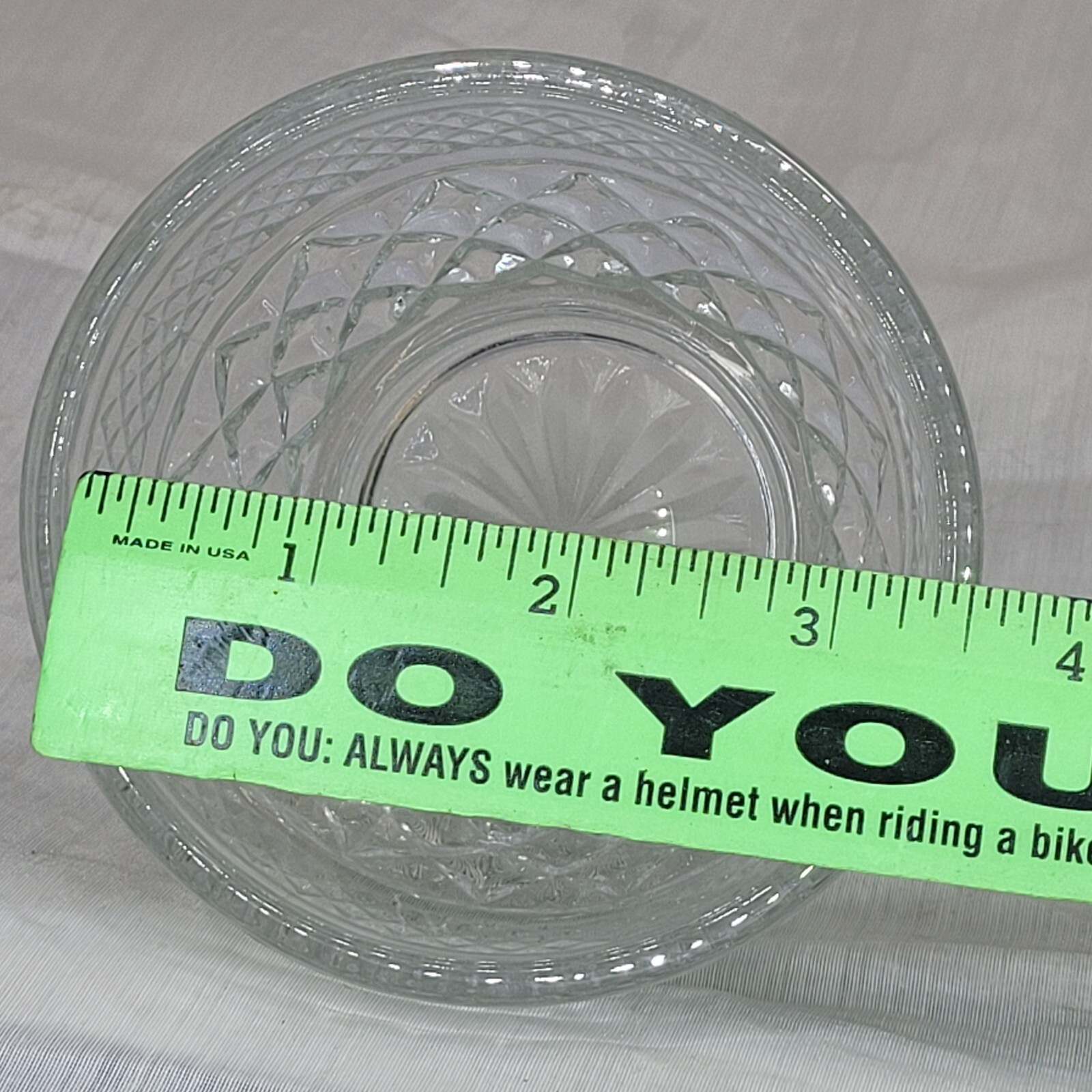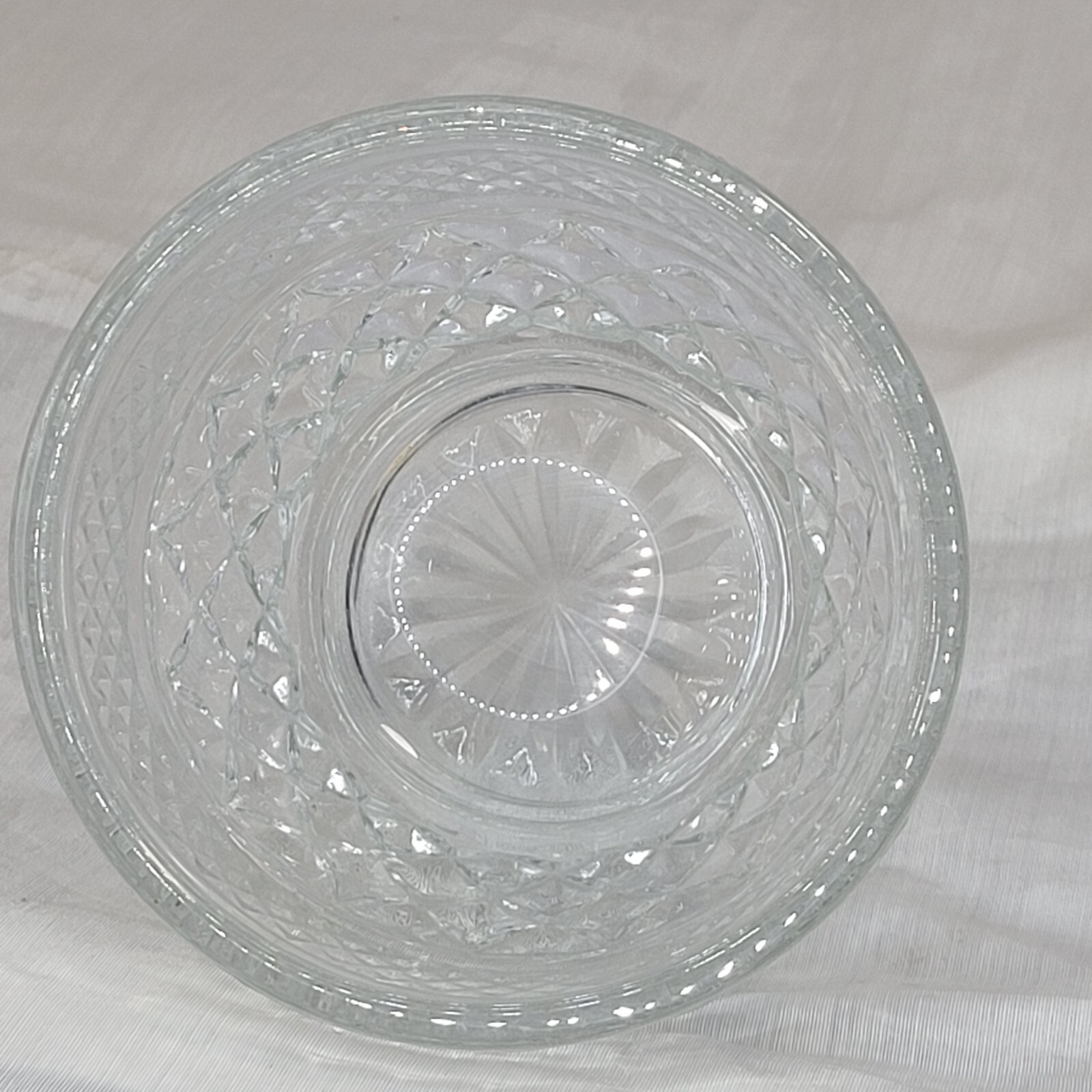 This vintage glass sugar bowl from Anchor Hocking features the Wexford Diamonds pattern, making it a great addition to any collection of dinnerware and serveware. The clear glass material and patterned finish add a touch of elegance to your kitchen or dining room. This sugar bowl is sold as-is and does not come with a lid. It is perfect for those who want to add to their existing collection or for those who appreciate the beauty of vintage glassware. Add this Anchor Hocking Wexford Diamonds sugar bowl to your collection today.