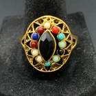 Vintage Antique Gold Tone Black CZ Rhinestone Cocktail Ring - Size 11