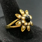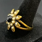 Vintage Antique Gold Tone Black CZ Rhinestone Flower Cocktail Ring - Size 9.5