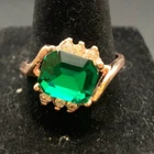Vintage Antique Gold Tone Green Rhinestone CZ Ring - Size 9.5