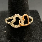 Vintage Antique Silver & Gold Tone Rhinestone Heart Ring - Size 8