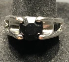 Vintage Antique Silver Tone Black Onyx Rhinestone CZ Ring - Size 8.5