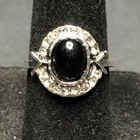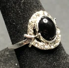 Vintage Antique Silver Tone Black Onyx Rhinestone Ring - Size 5