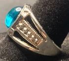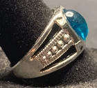 Vintage Antique Silver Tone Blue Rhinestone Ring - Size 8.5