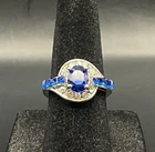 Vintage Antique Silver Tone Sapphire Blue Rhinestone CZ Ring - Size 5.5