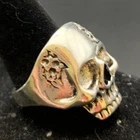 Vintage Antique Silver Tone Skull Ring - Size 9