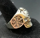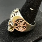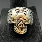 Vintage Antique Silver Tone Skull Skeleton Ring - Size 10