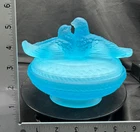 Vintage Aqua Blue Manganese Glass Westmoreland Satin Glass Doves on Nest This glows ghostly green under 365 wavelength black lights. This is due to the manganese used in the manufacturing of the glass. Does not glow under 395 wavelength light.