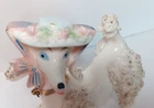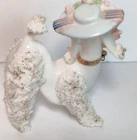 This adorable set of Japan made vintage figurines measures 5" in height and 4" in length (the mom) and the smaller one measures 2" in height and 2" in length. It does not have the chain that connect them. Please see all photographs as they are part of the description. Shipped with USPS Ground Mail.