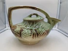 Vintage Art Deco McCoy Pottery Teapot 940s Pinecone & Branch w/Lid AS IS. There are a few condition issues - a couple of small chips on the spout and one small chip on the inside rim. Also there is glaze crazing on most of the teapot and a manufacturer defect - a small glob of green glaze on top of the lid. This would really still make a delightful addition to your teapot collection. All of my items are carefully packed for shipping, no matter their value - $5 items are wrapped with the same care as a $200 item. My goal is to have your purchase arrive safely. I use recycled packaging when possible but mostly use new, high quality products so your item will arrive intact without damage. Large, heavy and fragile items are harder to use combined shipping with but just ask if you would like to purchase more than one item and I am more than happy to do so if feasible. If not, maybe we can work out a shipping discount. Thank you and hopefully you will visit my store again!