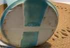 Vintage tall Aqua blue/green vase designs on both sides