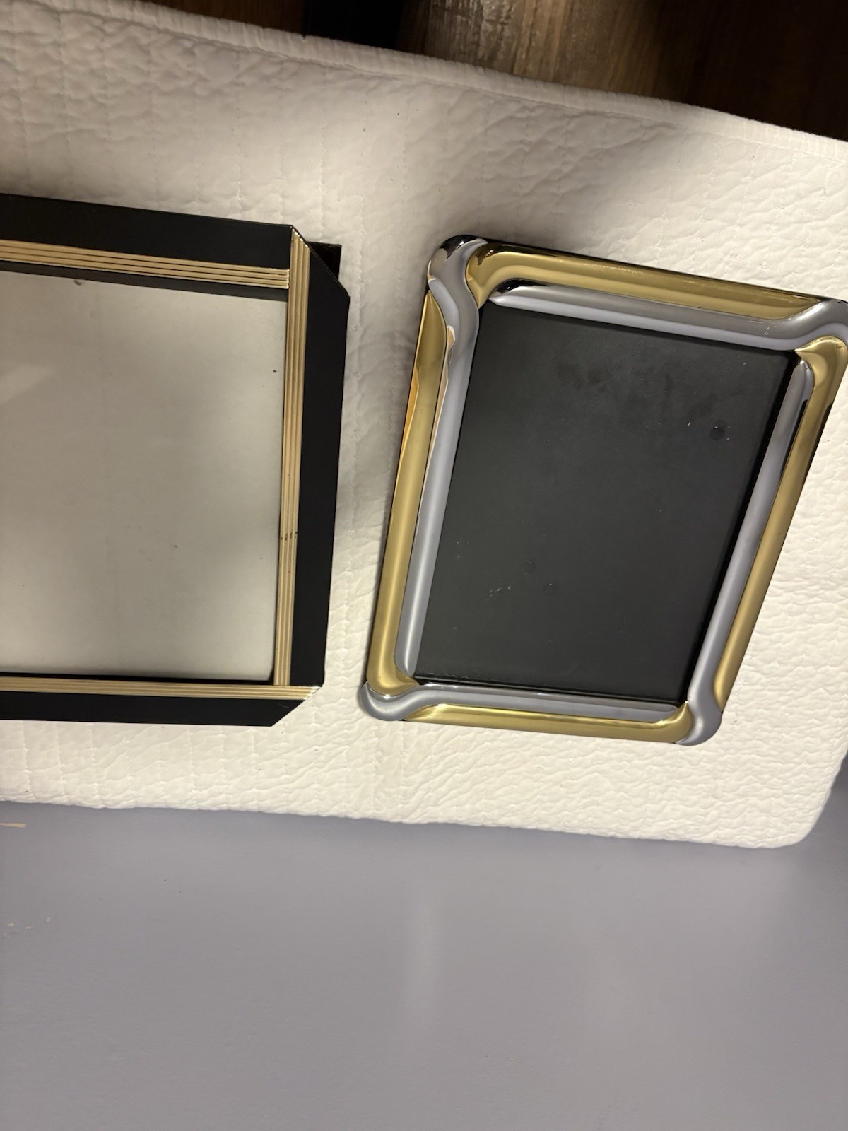 2 Bijou Ornate Enamel Picture Frames Felt Easel Back 4”x6”, 4”x4” Photo Crystals