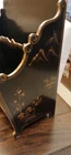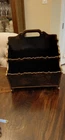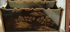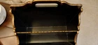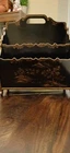 Vintage Asian Design Wood Magazine Holder Rack Great condition overall. Some small little imperfections and a few light scratches on the backside but nothing glaring and those could easily be covered up with a marker or even shoe polish. This piece has the Asian scenery on the front and sides while trimmed out in a gold paint. Very pretty and sturdy. Measures: 16" x 14" x 8" Comes from a clean and smoke free home