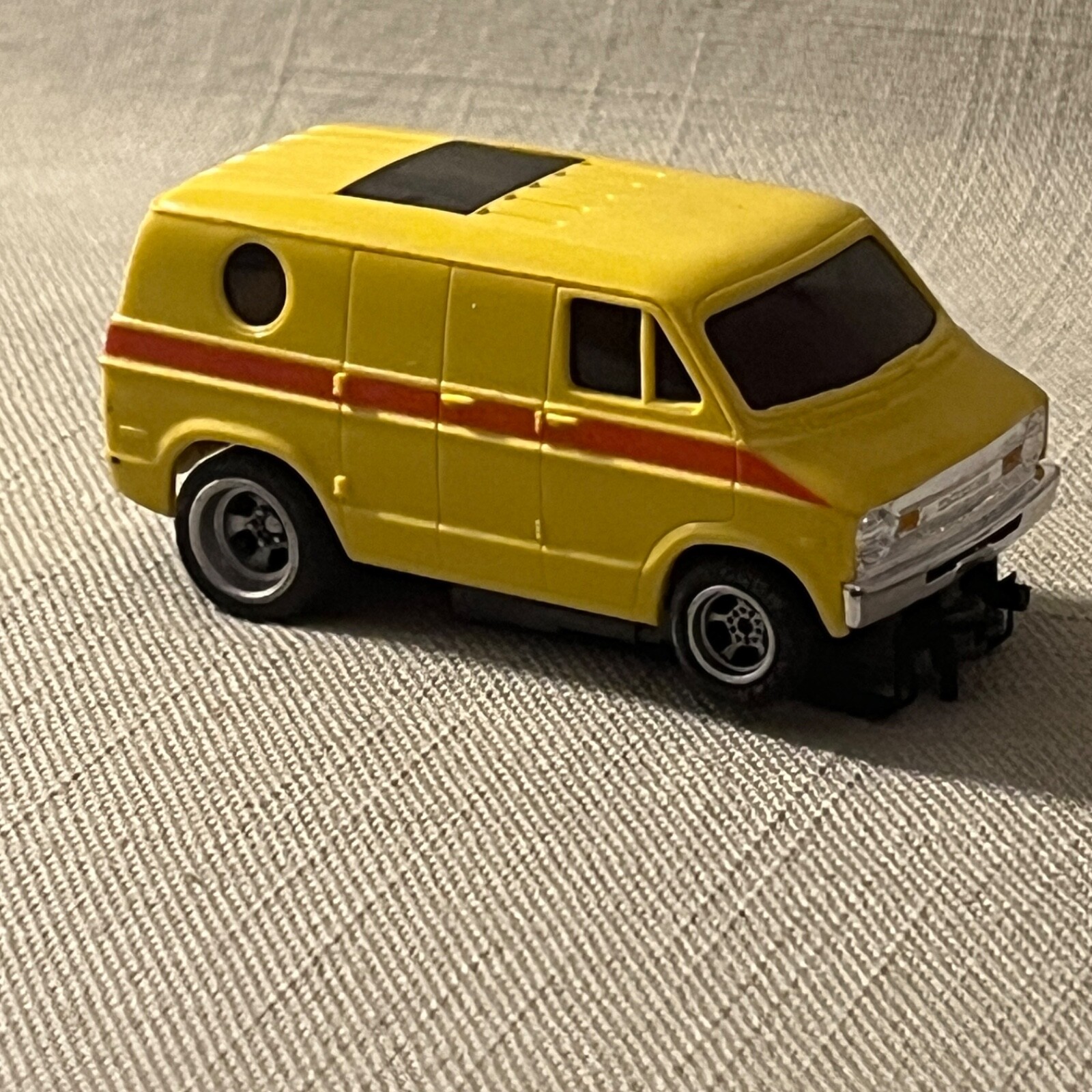 Vintage AURORA AFX DODGE VAN YELLOW W/RED STRIPE HO SLOT CAR. Condition is used as seen in pictures. Clean - missing back corner bumper. Ships USPS ground advantage.