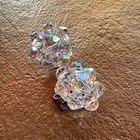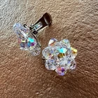 These mid-century clip-on earrings feature a stunning cluster of aurora borealis crystal beads, reflecting light beautifully for a timeless, vintage sparkle. • Clip-on back closures for easy wear • Aurora borealis finish adds iridescent sparkle • Mid-century vintage design • Approximately 1 inch in diameter • Lightweight and comfortable Minor wear on metal clip backs consistent with age. Diameter = 1 inch.
