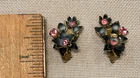 We have for sale a set of 2 vintage brooch/ pins with 1 set of matching clip earrings in nice preowned condition. All are signed Austria. The largest brooch has prong set pink rhinestones and measures approximately 2.25" x 2.5" at is widest points. There is what looks like a little bit of wear to the finish of that pin or perhaps that is how the finish is supposed to be (see pics). The other brooch also has prong set pink rhinestones and measures approximately 2.5" x 1". The sweet little matching clip earrings measure approximately 1" x .5" . We have not attempted to clean these pieces. These are from my mother Dorothy's (a Rosie the Riveter in WWII) collection. She was a fun, strong, and vibrant lady who had an eye for unique and beautiful items. Our hope is that these items find their way to people who will appreciate them as much as she did. Please look at all pictures and ask questions before purchase. Thank you!