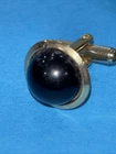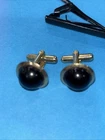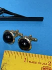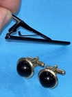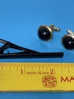 Vintage BLACK ONYX DOMED CUFFLINKS And Tie Clip Bar