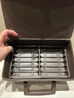 Vintage BMI 12 Cassette Tape Storage Case Holder Brown with Handle Great small vintage case. Please see pictures that plastic insert for tapes inside have a very small imperfection or tear due to age. Will not affect tapes storage. Thank you.