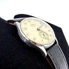 Vintage B.W.C. Suisse Manual Wind Wristwatch – c.1940s – 15J – Working Description: A handsome vintage Swiss wristwatch by B.W.C. (Buttes Watch Co.), dating to approximately the 1940s. This classic piece features a manual wind movement with subsidiary seconds at 6 o’clock and retains a beautifully aged dial with attractive patina, giving it plenty of period character. The watch is currently running well and presents nicely on the wrist. It has been fitted with a new black leather strap and is supplied in a Bowles Ltd watch gift box, making it ideal as a gift or for a vintage watch collection. Key Details: Maker: B.W.C. (Suisse) Origin: Swiss made Movement: Manual wind mechanical movement Jewels: 15 jewels Dial: Cream dial with Arabic numerals and subsidiary seconds Case: Stainless steel case back (Fond Acier Inoxydable) Strap: New black leather strap fitted Presentation: Supplied in a Bowles Ltd watch gift box Dimensions: Case width: 27.7mm including crown Case width: 25.5mm excluding crown Lug to lug: 31mm Thickness: 10.3mm Lug width: 16mm Condition: Running and operating well at the time of listing Dial shows age-related patina and spotting, consistent with age Acrylic crystal in excellent condition Case shows wear, plating loss, and marks from age and use, particularly around the bezel and lugs Case back clean with light surface wear Strap is new and unworn Summary: A charming and wearable 1940s Swiss wristwatch with honest vintage character. A great entry into vintage mechanical watches or a solid addition to an established collection. Additional Notes: Please note this is a vintage mechanical watch. While it is running and operates well at the time of listing, no guarantee is given regarding timekeeping accuracy, power reserve, or long-term reliability. Vintage watches are sensitive to shock, magnetism, and moisture, and may require servicing to perform to modern expectations. The service history of this watch is unknown, therefore we recommend a service be carried out to ensure long-term reliability. This watch is sold as a vintage collectible item rather than a modern timepiece. As usual, this item will be packaged carefully and dispatched with tracking. International shipping is available through the eBay Global Shipping Programme (GSP).