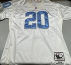 Show your love for the Detroit Lions and one of their greatest players of all time, Barry Sanders, with this vintage Mitchell & Ness throwback jersey. Featuring the iconic number 25 and the team's colors of white and blue, this jersey is perfect for any fan of the National Football League during the regular season. It's officially licensed and made for men, with a one size fits all design. Perfect for game day or displaying in your collection, this jersey is a must-have for any true football fan.