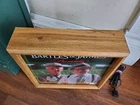 Bartles & Jaymes Premium Wine Coller Display Bar Sign lighted with wooden surround case, some wear on seam, has a older mildew smell from storage, picture moves back & forth but will stay forward once displayed, approximately 13" × 13", as pictured, takes a second for florescent light to turn on, no returns. Shipped USPS