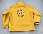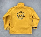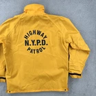 This vintage Bauer 90s NYPD Highway Patrol rain jacket is made of polyester in a solid yellow color. It features a mid-length design with a zip and button closure, suitable for casual or workwear occasions. The jacket has a logo accent, pockets, and a regular fit, perfect for men in size L. With a retro police theme, this jacket is ideal for all seasons and was manufactured in the United States. No holes or stains See pictures for pictured measurements compare with your favorite garment and ask questions if you have any Add to your collection today Browse my other items I can combine shipping