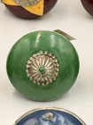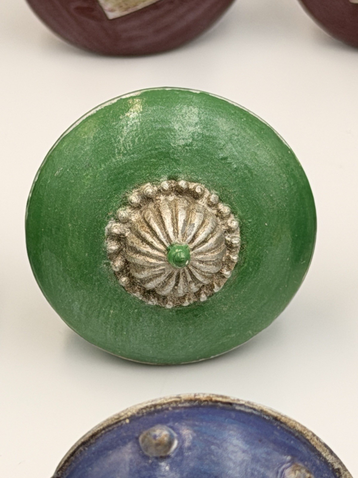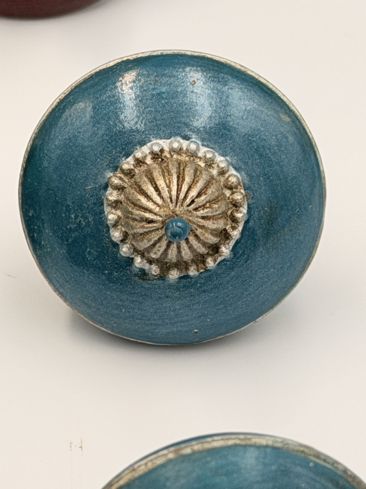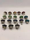 Add a touch of artisanal charm to your next furniture upcycling project with this beautiful mixed lot of 18 decorative cabinet knobs. This collection features a vibrant variety of handcrafted ceramic, porcelain, and natural stone pulls in deep jewel tones and earthy neutrals. Style & Variety Designs: Includes "pumpkin" ribbed shapes, smooth globes, and starburst metal accents. Colors: A rich palette of lapis blue, emerald green, turquoise, deep maroon, and classic black. Materials: High-quality glazed ceramic and genuine natural stone with silver and gold-tone hardware. Condition Note (Please Read) Total Quantity: 18 Knobs. Condition: 13 are New. 5 in fair condition. ( show in pictures) Repair Needed: Please note that 3 knobs require repair at the back where the screw meets the base (ideal for someone handy with epoxy or specialized hardware adhesive). Hardware: Most knobs include the original mounting bolts/nuts, though a few may require standard replacement screws from a hardware store.
