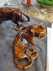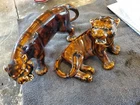 Vintage Bengal tiger figurines ceramic both marked China. Very beautiful brown and black glazed. No chips nice clean pieces for big cat collectors.