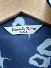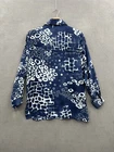 Please see measurements size tag is missing. This vintage Beverly Rose button-up tunic is a must-have for any fashion enthusiast. The abstract pattern and blue color make it perfect for any occasion, whether you're attending a wedding or a casual get-together with friends. The long sleeves and collared neckline give this piece a classic feel, while the relaxed fit and lightweight polyester material make it comfortable and easy to wear. Featuring a button closure and accents, this tunic also has a vintage touch that adds to its charm. The size is M/L, making it a great fit for regular sizes, and it's ideal for those who love the USA theme. You won't find a more unique and stylish top than this vintage Beverly Rose tunic.