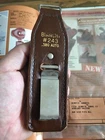 Vintage Bianchi New Old Dealer Stock, brown leather single magazine shoulder holster component with spring clip. Holder fits most .380 magazines . Very difficult to find this new old stock. Holder is not in original package but is absolutely new old dealer stock. Model #242 These light weight accessories fasten quickly to any shoulder holster. They may be mounted individually or as a cuff case/ammunition holder combination, securing to the belt with a clip. Either way they provide a perfect counterbalance for your gun. Please look at the photos and ask any questions you have as this is the item you will receive. Listings may have other items in photo such as ammo, pistols, magazines, catalogs,cartridges, cuffs or any other item used as photo props are not included with your purchase. Please check out my other listed items and consider following my store. I am constantly updating my store with new hard to find Vintage leather. I also combine shipping so please shop at my store and save some cash on shipping. I ship quickly and have excellent feed back. Thank you and stay safe..