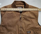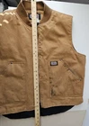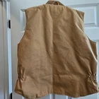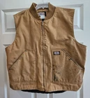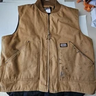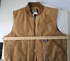ITEM: Vintage Big Smith Men's XL Insulated Vest for work, hunting, hiking, etc. The caulkling stains give it a "distressed look". Measurements armpit to armpit is 26 inches; Length is 27.5" to end of zipper and 30" on back. Outside large slanted pockets are 10" and the inside pocket is 4" x 7" with closure. Loop on back for hanging. Tag says made in Russia. See photos. CONDITION: In good clean used condition, stained mostly on pockets but also on inside and back. Zipper works fine. No smells, rips or tears. See photos. Items stored in smoke free, pet free home. PHOTOS: The item(s) pictured will be shipped. Please check each photo and consider them as part of the description. Any display props are not included. Photos taken in natural light. Your device color settings may vary. SHIPPING: We ship 1-2 business days after payment has cleared and only ship to the address supplied by eBay. We take extra care to package items securely for delivery. Email if you have questions. Thank you.