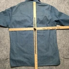 Brand: Big Yank Item: Vintage mens long-sleeve denim western snap shirt, classic workwear style with a light blue chambray look. Material: 50% polyester, 50% cotton permanent press (per neck tag). Color: Light blue denim. Details: Point collar, full snap-front closure with metal snaps, dual snap-flap chest pockets with yellow Big Yank logo tab, triple-snap cuffs, straight hem with visible selvedge edge on inside, and contrast interior yoke panel. Fit/Gender: Mens; size tag not present—please refer to photos with measuring ruler for approximate fit. Additional notes: Care tag reads "Machine wash warm, tumble dry medium, remove promptly, avoid chlorine bleach." Add a second (or more) item to your cart from my store to receive a discount on your order! [does not apply to orders made with Best Offer] (shown in cart) Shipping is a non-negotiable flat rate based on size and weight. Each additional item is only $2 more in shipping. Please message me with any questions. I accept free returns for any reason within 60 days of delivery date, including "Does not fit" and "Just didn't like". Please note original shipping may be withheld in certain situations. Items are shipped from a smoke-free home and washed with Free & Clear detergent (except Dry Clean Only items). US Seller. Please message me with any questions! Items shipped within 1 business day (unless there is a vacation note).