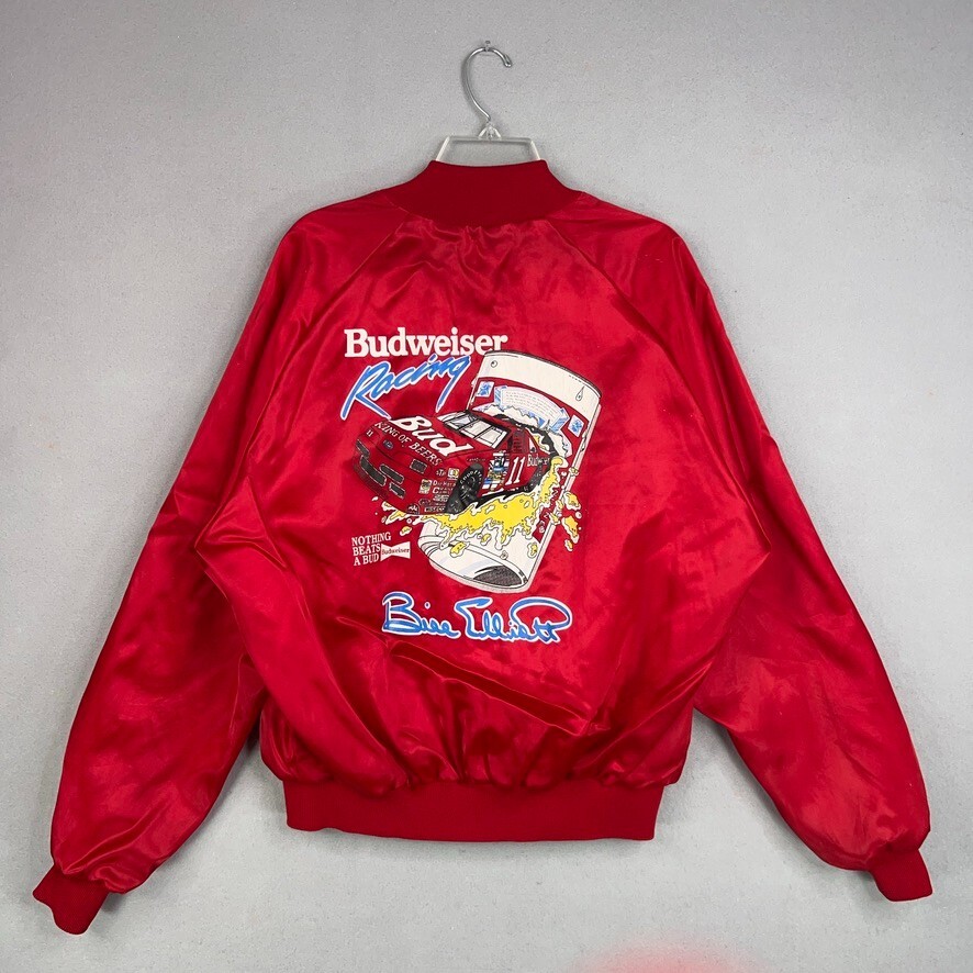 Vintage Bill Elliott Jacket Mens XL Red Satin Bomber Budweiser Racing NASCAR Condition: - Spots on back. - Some wear and scratches to the satin. - Good used condition. - No rips or holes. - Made in USA. - Nice double sided graphics. Size: - Mens XL. Measurements: - Previous washings may change the sizing written on the tag. - Please refer to the photos above for all measurements. - Please compare our measurements to that of one of your favorite garments. - Please note, item measurements are approximate . All items are bagged and sealed after being photographed, then stored in a smoke free environment to ensure the item is exactly the same as when photographed. I carefully package and ship daily. Feel free to contact me with any questions. All items have been washed per eBay standards & policies.