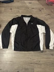 This vintage Reebok windbreaker jacket in size Large features a classic black and white color scheme, perfect for adding a touch of retro style to any outfit. Made from nylon, this zip-up jacket is designed for men and is a regular fit. The windbreaker style adds functionality, making it suitable for various outdoor activities. The Reebok branding adds a sporty touch, while the colorful theme gives it a fun and vibrant look.