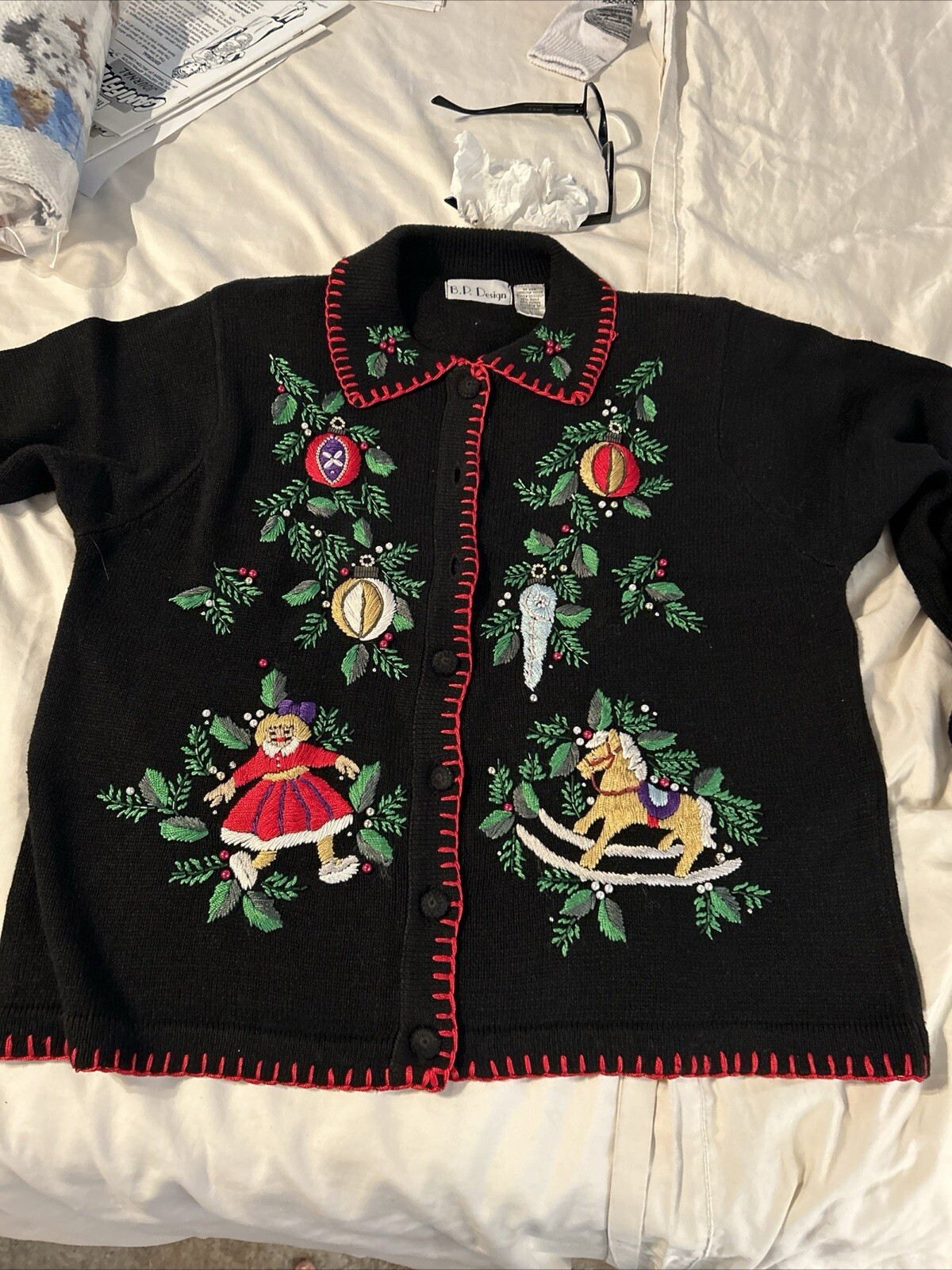 Vintage Black B.P. Design Christmas Embroidered Beaded Med Cardigan Sweater. Condition is Pre-owned. Shipped with USPS Ground Advantage.
