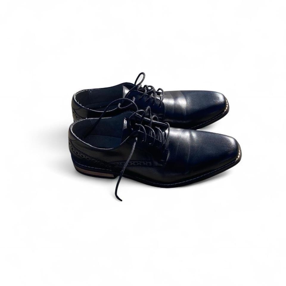 These Vintage Black Leather Lace-up Oxford Shoes by Steve Madden Men are a classic and stylish addition to any man's wardrobe. Crafted with genuine leather, these shoes feature a solid black color with lace accents for a sophisticated look. With a lace-up closure and Oxford style, they are perfect for dressy occasions in the summer, fall, and spring seasons. The outsole and upper material are both leather, ensuring durability and comfort. The size 9 shoes are designed specifically for men and come in a timeless black color that pairs easily with a variety of outfits.