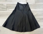This stylish black lined flared leather skirt is from Leather fashions of Malvern. This midi - length skirt is fastened with a zip and button closure. Although the skirt label says it is a size 12 It is a vintage 12 and vintage sizes tend to come up smaller so I have added the exact measurements The waist measures 28" and has belt loops. From the waistband to the hem is 30". Please see label for garment care which advises specialist dry cleaning. See pics provided for more details. Ask any questions. Thanks for looking and Happy Bidding.
