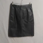 Visit The Rag Traders Closet for hundreds of other quality men's & women's garments! ......IMPORTANT INFORMATION FOR BUYERS...... Garment sizes can vary between brands, eras, and due to wear and washing over time. Teen garments may also have similar sizing to small adult pieces and are not always easily distinguishable. To ensure the best fit, buyers are encouraged to check all provided measurements, review photos, and read the full description before purchasing, as it is the purchaser's responsibility to do so. Description: Sleek vintage black leather skirt with a straight pencil silhouette. Fully lined with a zip and snap closure. A timeless and flattering shape in lovely condition, perfect for sophisticated or evening wear. Key Features: Size: Approx AU 6 (based on measurements) Material: Leather (outer), lined Color: Black Design: Pencil silhouette Features: Zip and snap closure, fully lined Condition: Very good vintage condition with minimal signs of wear Measurements: Waist: 62 cm Length: 52 cm Please refer to photos as form part of the description Sent with Australia Post Standard Tracked Parcel Visit our store to view hundreds of other items Combined postage available