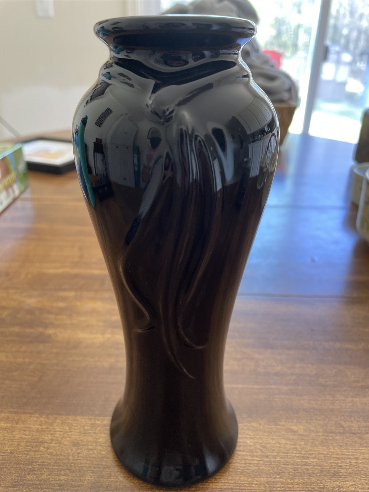 The item is a vintage-style vase, possibly made in the style of Fenton or Haeger pottery. Has no chips or cracks. Perfect small/medium classic vase. 8 inches tall with a 3 inch base