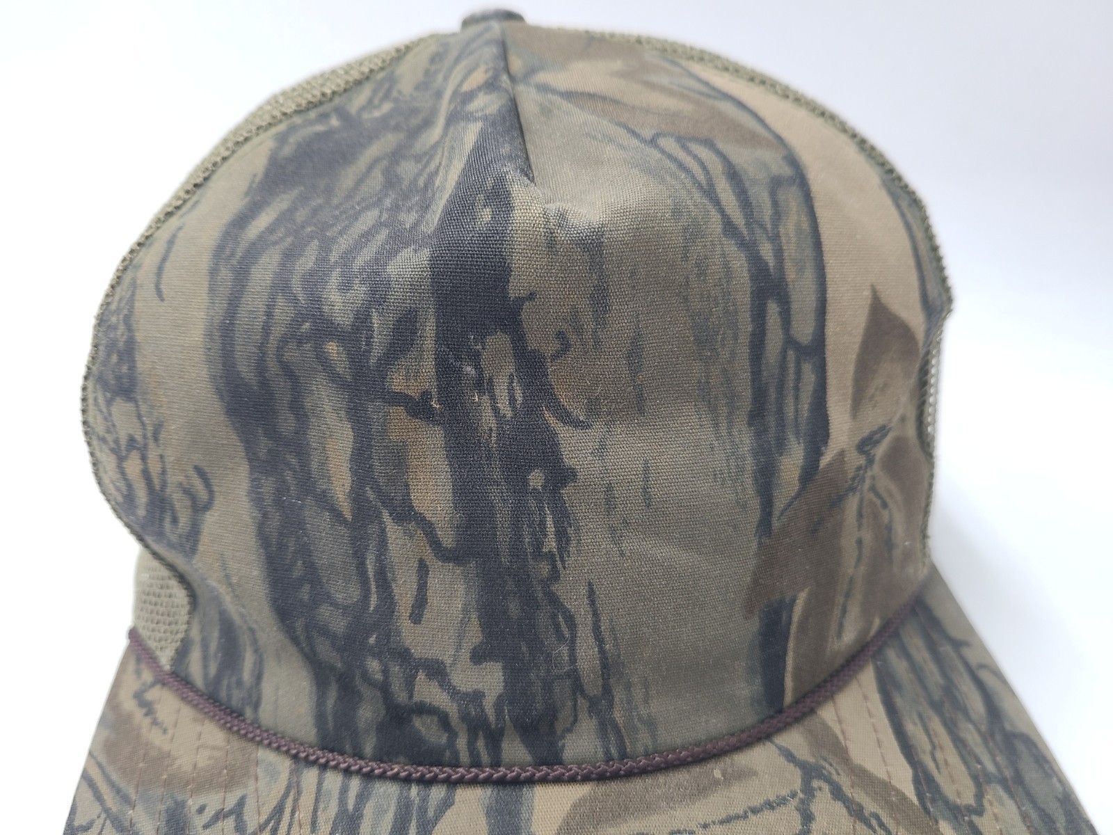 The snapback has a thin crack as seen in photos. I was able to snap and unsnap it multiple times without any issues. Also has some stains/discoloration underneath the hat. Vintage Blank Plain Camo Mesh Trucker Snapback Hat Cap Hunt Fish Men Brown Green. EACH ADDITIONAL HAT PURCHASED IS ONLY $1 ADDED SHIPPING!