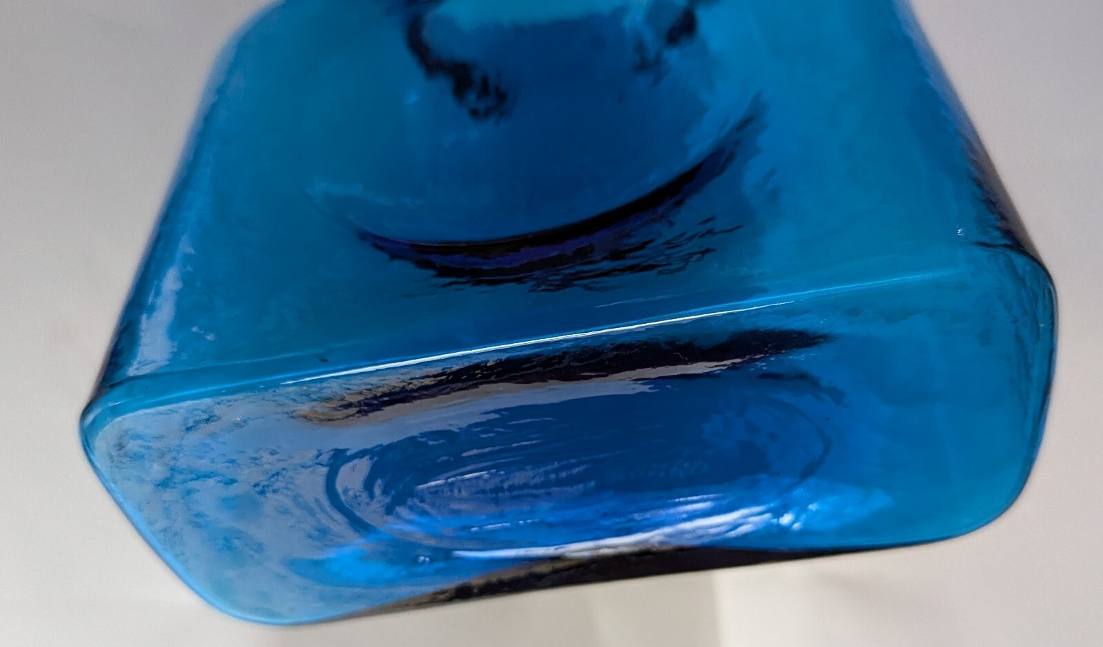Vintage Blenko Blue Water Bottle Pitcher Double Spout 8" tall EUC No chips cracks or other signs of use.