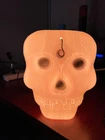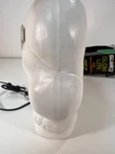 This vintage Blow-Mold Light Up Skeleton Face Blinky Glow Lite is a spooky addition to your Halloween decor. The 8" x 8" light is corded and made of plastic, with a unique glow that makes it stand out. The design is a novelty item that will attract collectors and enthusiasts alike. It was manufactured in the 1980s and has been tested to ensure that it works perfectly. This item is a must-have for anyone who loves Halloween and wants to add a touch of vintage charm to their decor. Tested and works. In good condition with a little bit of wear, as expected for its age. Plugged in and works. See second photo.