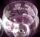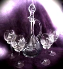 Vintage Blown Clear Cut Crystal Decanter Set with 4 Wine Glasses Daffodils 18" T Lovely hand cut Daffodil Pattern. Well taken care of no chips cracks or repairs. Approximate measurements Decanter 18" Tall With Stopper Glasses 8" tall