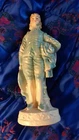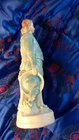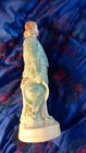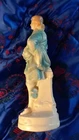 This vintage chalkware figurine depicts the famous Blue Boy painting by Thomas Gainsborough. Measuring at 10.5 inches in height and weighing 3 lbs, this medium-sized figure features a high gloss finish and a 3D effect with raised relief, making it a special and limited edition piece. The carnival prize theme and blue color palette make it a great addition to any room, perfect for teens, boys, girls, adults, and kids alike. Hand-painted and crafted with care, this original piece from the early 20th century (1911-1940) is an excellent addition to any fine art collection. Its packaging comes unboxed, but the sturdy and durable chalkware material ensures it arrives in great condition. Whether you're a collector or simply looking for a unique decoration, this Blue Boy chalkware figurine is sure to catch your eye. Beautiful chalkware blue boy measures 10.5 inches tall. Some chips to the finish as shown. Great carnival prize. Visit my online vintage store for more selections and save on shipping.