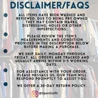 Item as described but one of the buckles had been squashed in the post, I managed to straiten it so alls good. Had to message a few times to get package delayed from being sent, going on holiday but eventually it was sorted. Package left in my green waste recycling bin which wasn't too clever.