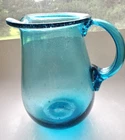 Large Hand blown Pitcher circa 1960 Excellent condition no nicks or chips Many bubbles imbedded in the glass due to the hand blown technique Features 1 handle with a generous lip Smooth glossy finish This beautiful pitcher will look great on your counter or would make a very special gift Ships same day or the following day the post office is open