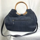 Vintage Blue Jean Handbag Purse Double Wood Handles Removable Strap Retro Y2K Strap Drop 21 " Width 14" Tall 14 " Depth 4 " Excellent Fashion Gem! WalkupandDeal offers great deals on previously loved items....... We inspect each garment for any flaws the item may have: missing buttons,holes,spots,tears or pilling. Our suppliers are carefully selected, so we only offer items that are in Great with minimal wear ,excellent,nearly new or New with tags condition. Information on each item can be found in the "item specifics" tab, including: Size, measurements,fabric content and care instructions. Our faculty is a non smoking environment and each item is laundered & steamed prior to listing and shipping. We strive for every customer to be happy with their items and as always offer a "return for any reason" policy...... ..... Thank you for shopping with us!!!