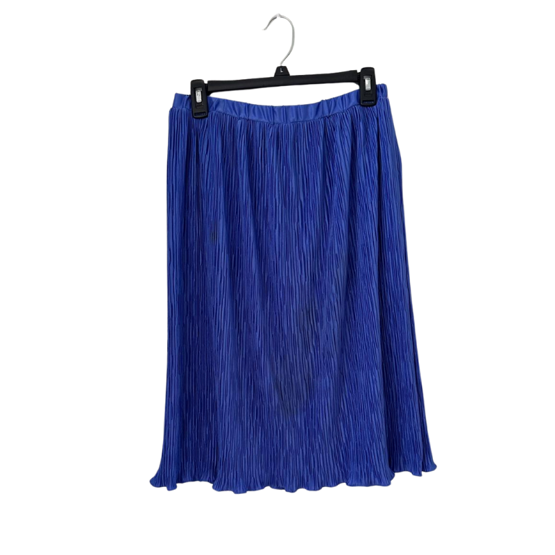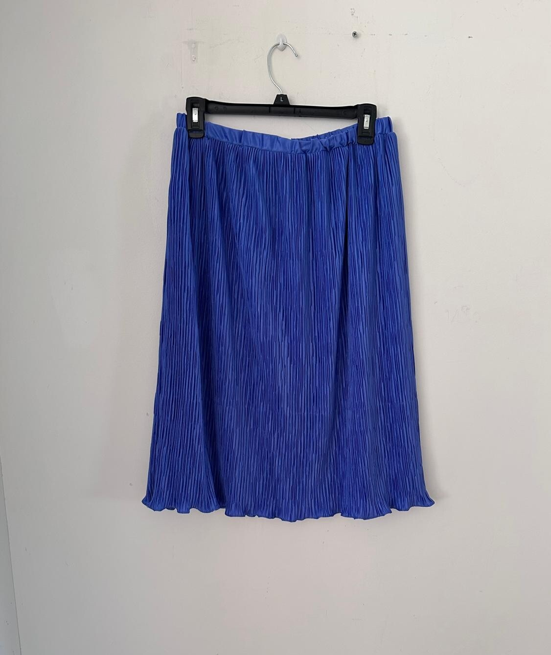 Vintage deep blue pleated midi skirt made from 100% polyester. Features an elastic waistband for comfort and ease of wear. Beautiful flowing silhouette with a subtle shimmer, perfect for vintage lovers or retro-inspired outfits. Marked size 13/14 (see measurements for best fit). Preowned and in excellent condition with no visible flaws. Style: Vintage pleated midi skirt Size: 13/14 (vintage sizing; see measurements) Color: Royal blue Fabric: 100% Polyester Waist: Elastic waistband Care: Dry clean only Condition: Excellent preowned condition
