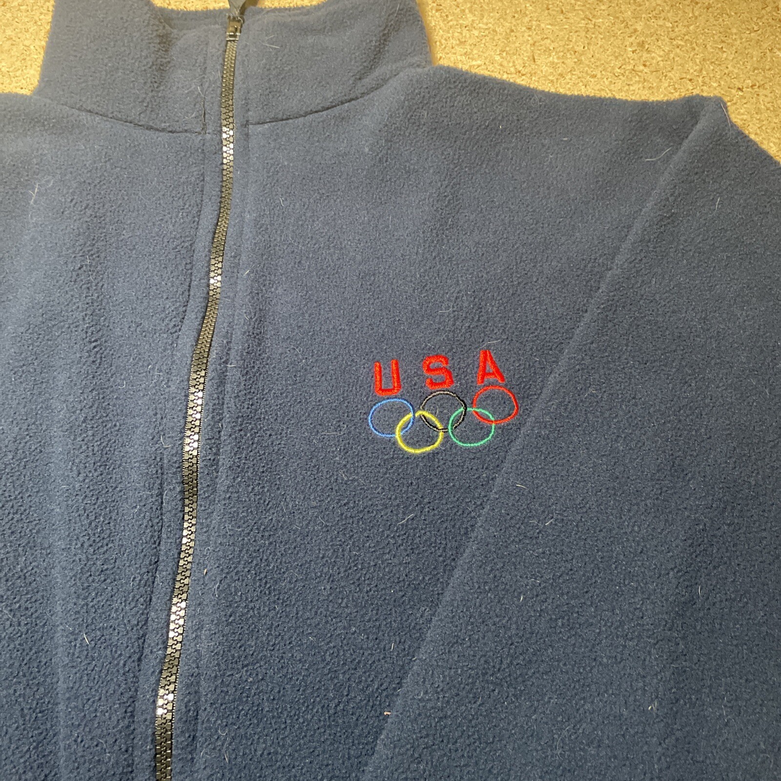 Vintage Blue USA Olympic Rings Zip Fleece Jacket Mens XL 90s Made in USA