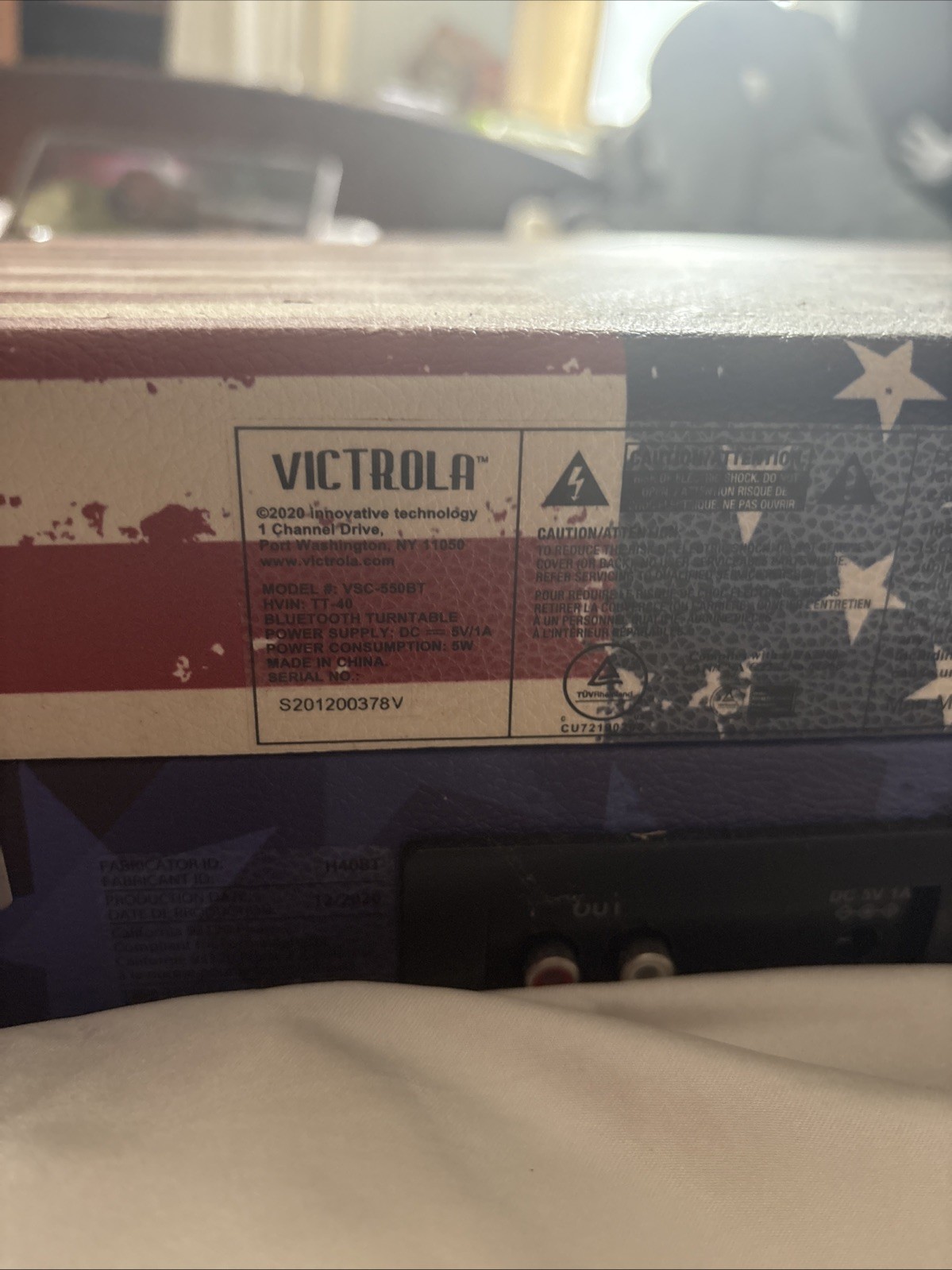 Brand New American Flag Victoria Bluetooth record player. I never used it, it has just sat in my room unused. It works perfectly and originally cost $70